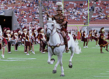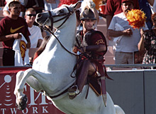 Traveler, the noble white horse that appears at all USC home football games with a regal Trojan warrior astride, is one of the most famous college mascots.